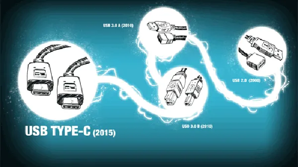 <center><i>图1 第一个USB 2.0埠于2000年推出,此标准持续发展至USB Type-C技术。</i></center>