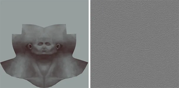<strong>图 4:</strong>特征图(左)和细节图(右)。 细节图由头部模型 UV 绘制,但会重复多次以添加更多细节。