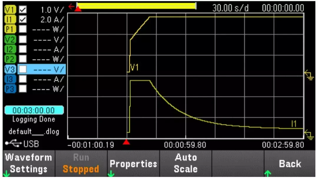 简单的程序或应用软件(如BenchVue)可以帮助检索电源,以便搜集数据并绘制图形。某些新款台式电源配有图形用户界面,还可直接使用USB存储器进行记录。图2中的示例是超级电容器在未达到2.7V的电压极限之前,以5A的最大速率进行充电的情况。