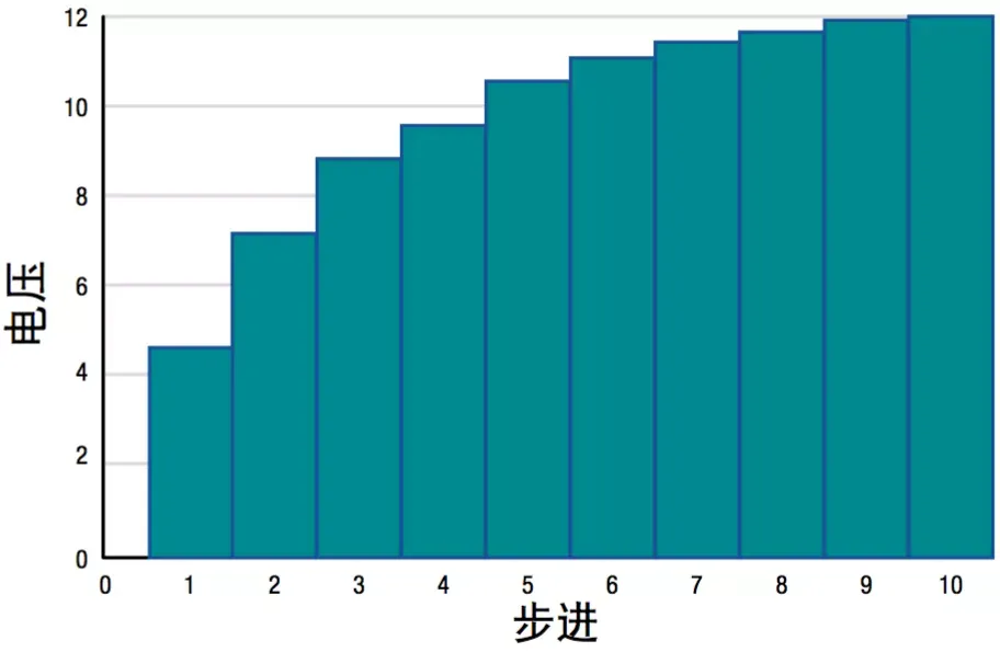 例如,由于人眼能够感应到光线的非线性变化,因此我们可以使用列表模式让灯光以非线性的方式变暗。沿着图6中的曲线改变灯泡电压,灯光会更加流畅地逐渐变暗。生成输出电压的列表时,使用的就是这条曲线上的各个点。