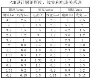 <strong>三、PCB设计时铜箔厚度,走线宽度和电流的关系</strong>