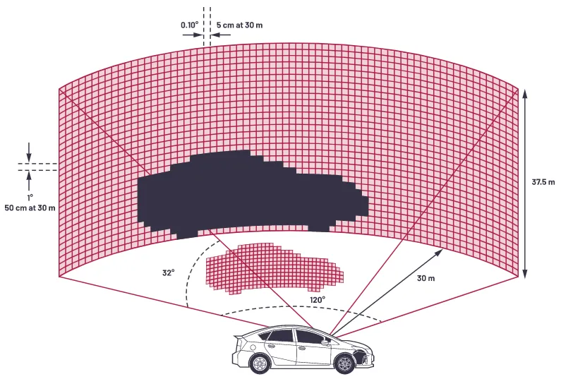 <p>所选的1×16像素FOV可用于自动驾驶车辆和自动地面车辆的对象检测和防撞等应用中,或者使受限环境(例如仓库)中的机器人实现同步定位与地图绘制(SLAM)。</p>