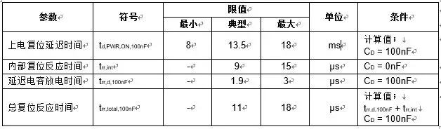 数据手册中通常给出了使用某特定电容值(例如,100nF)的复位时间。