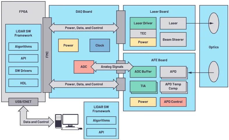 <p><em>图3.ADI公司的AD-FMCLIDAR1-EBZ LIDAR开发解决方案系统架构。</em></p>