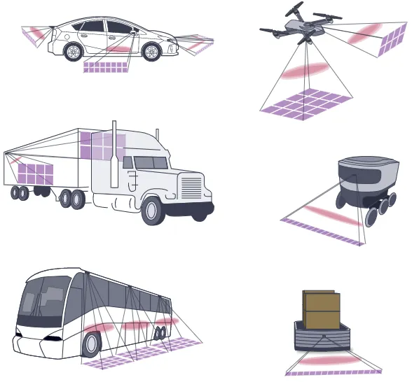 <p>所选的1×16像素FOV可用于自动驾驶车辆和自动地面车辆的对象检测和防撞等应用中,或者使受限环境(例如仓库)中的机器人实现同步定位与地图绘制(SLAM)。</p>