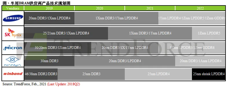 <p>除了三大原厂外,台厂南亚科(Nanya Tech)、华邦(Winbond)皆持续推出更多元的类别来因应。南亚科除了拥有从DDR到DDR4、LPSDR到LPDDR4X完整的产品组合外,在制程节点上也已大量导入20nm,且拥有成熟稳定的良率。整体来看,目前specialty DRAM占该公司营收比重超过六成,其中又有近15%来自于车用。</p>