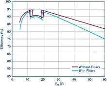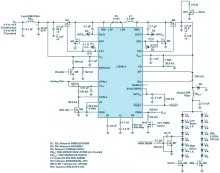 因为可满足灯组中每个灯串之功率和功能要求的驱动器必须接受相对较宽的电池电压范围,并采用一种升降压拓扑将其转换为各种各样的灯串电压——它必须具有小巧和通用的特点,以便容易地安装到灯组十分受限的空间之中,并产生极低的 EMI,从而尽量地减少研发工作量并免除增设昂贵 EMI 金属屏蔽外壳的需要。而且,它还应该是高效率的。